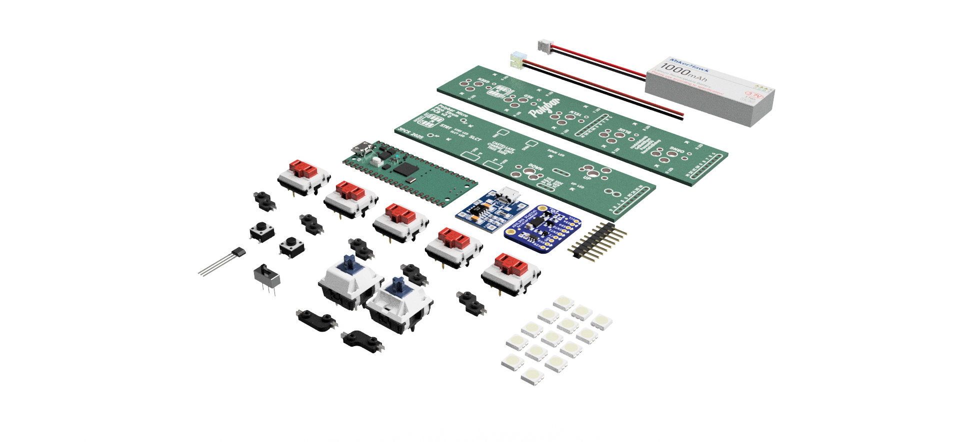 The Polybar Micro Wireless Kit comes with all necessary hardware and electrical components to assemble 1 set of Polybar Micro PCBs. (See Item List)